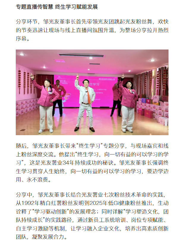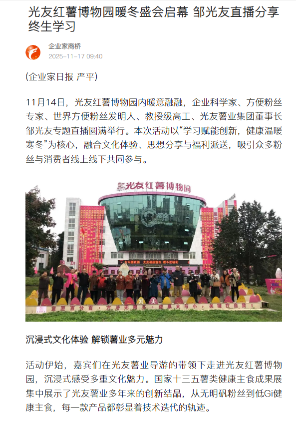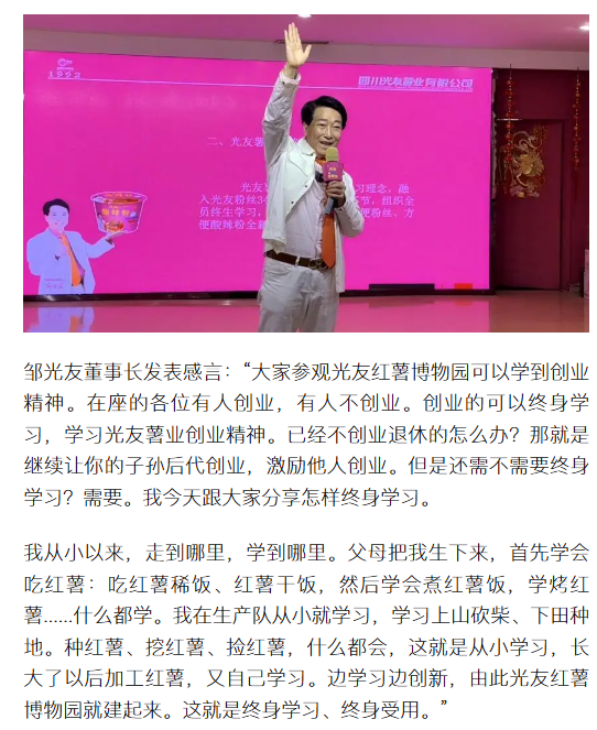 轉載搜狐網(wǎng)-光友紅薯博物園暖冬盛會(huì )啟幕 鄒光友直播分享終生學(xué)習