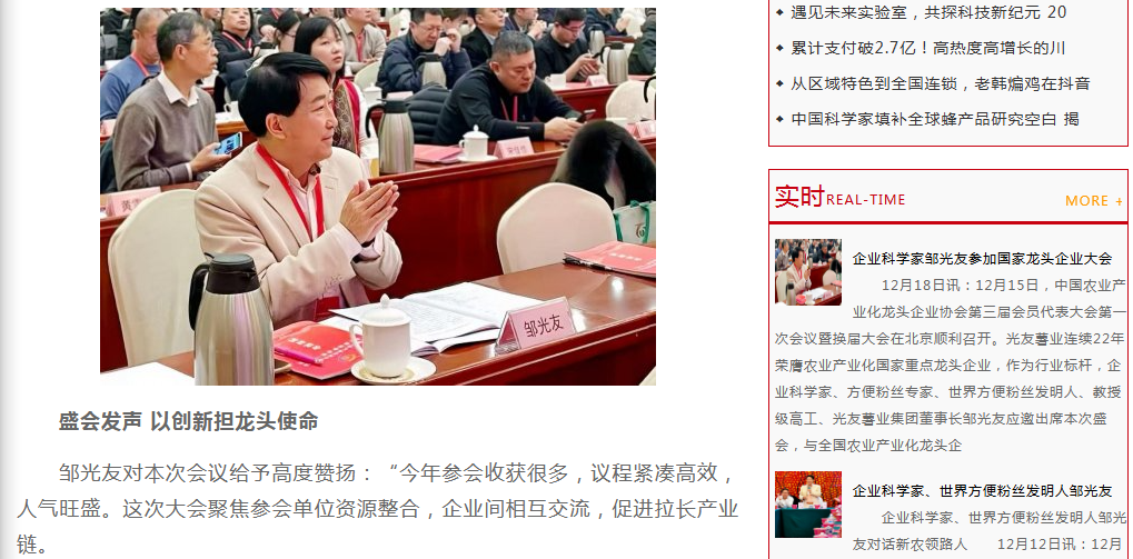 轉載中國食品經(jīng)濟網(wǎng)-企業(yè)科學(xué)家鄒光友出席國家龍頭企業(yè)大會(huì )