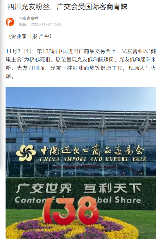 轉載搜狐網(wǎng)-四川光友粉絲,廣交會(huì )受?chē)H客商青睞